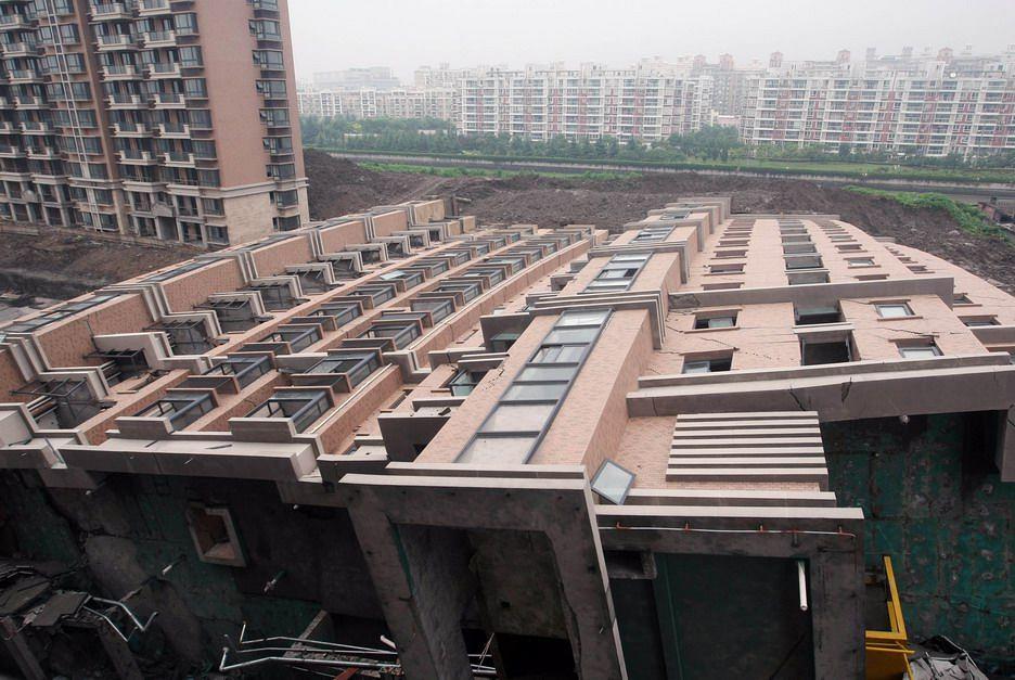 Ετούτο εδώ το κτίριο κοίτα να δεις: Έπεσε, αλλά πώς έπεσε. Στο πλάι. Σαν να έγειρα να ξεκουραστεί, ζντουπ, πάρ' το κάτω. Συνέβη στη Σαγκάη, στις 27 Ιουνίου.