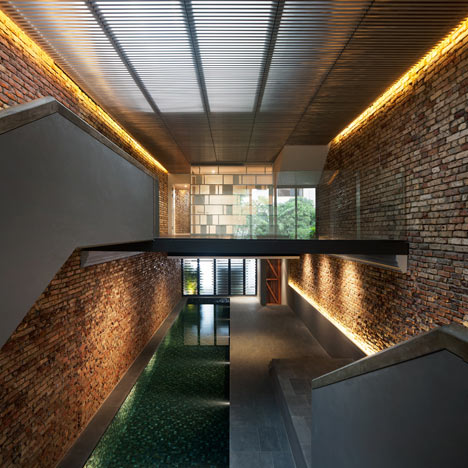 Κοίτα τι ωραία. Ωραία, δεν είναι; Τούβλα, φώτα, πισίνα, ψηφίδες, πλακάκια, άπλα, ξύλο, μια ομορφιά. Μα κοίτα: Πιθανότατα είναι ημέρα. Και για να βλέπεις να κάνεις μπάνιο πρέπει να έχεις αναμένα τα φώτα. Αυτό είναι το πρόβλημα αυτού του σπιτιού, που παλιά ήταν μαγαζί/εργαστήρι εκεί στη Σιγκαπούρη. Είναι μακρόστενο, και δε μπαίνει μέσα αρκετό φως. Αλλά είναι ό,τι πρέπει για φωτογραφία, δε μπορείς να πεις. Φτάνει να είναι αναμμένα τα φώτα.