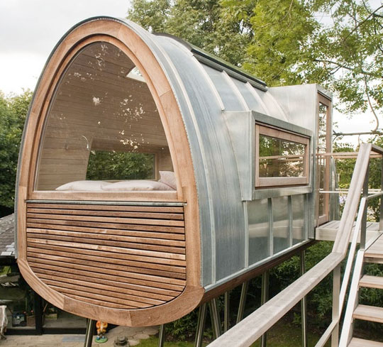 Ορίστε: Αυτοί οι Γερμανοί φτιάχνουνε δεντρόσπιτα για την αυλή σου, μοντέρνα και κουλάτα, ακόμα κι αν δεν έχεις δέντρα. Το κόστος, λέει, ξεκινά από τα 18-20 χιλιάρικα και μπορεί να φτάσει στη στρατόσφαιρα, ανάλογα με τις τζιριτζάτζουλες που θα ζητήσεις στο design. Το σπιτόσκυλο δεν έχει καμία ιδαίτερη αγάπη γι' αυτά τα πράγματα (γιατί να μη φτιάξεις ένα κανονικό guest house, στη γη, να πατάει στο χώμα;) αλλά περί ορέξεως σπανακοτυρόπιτα, κι όποιος το λέει είναι.