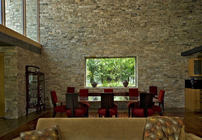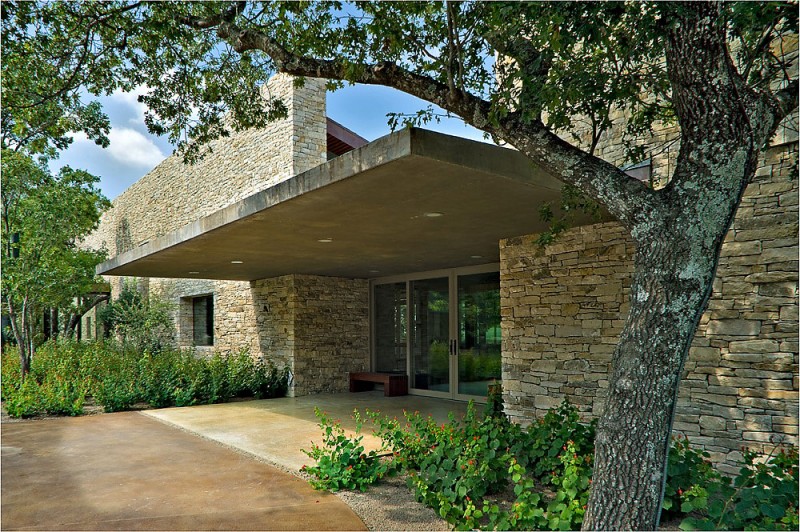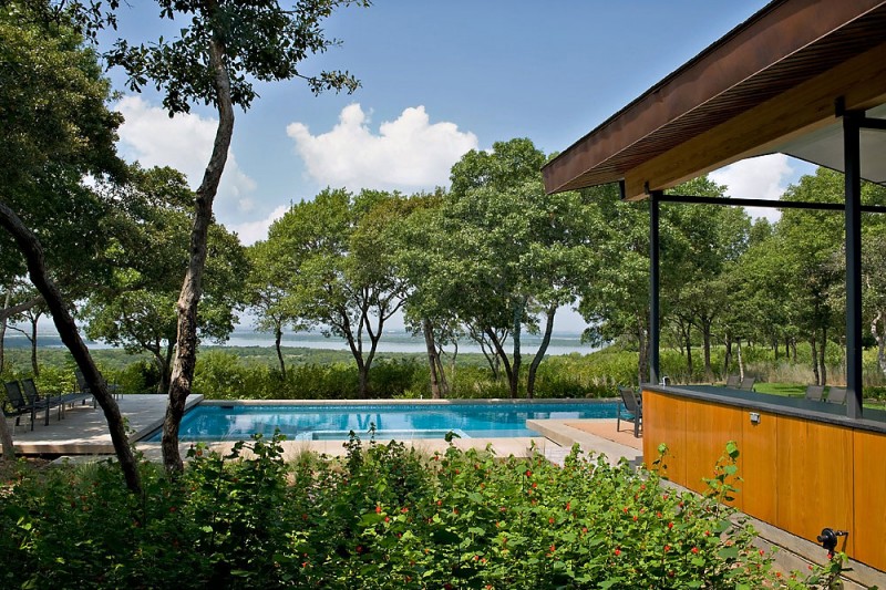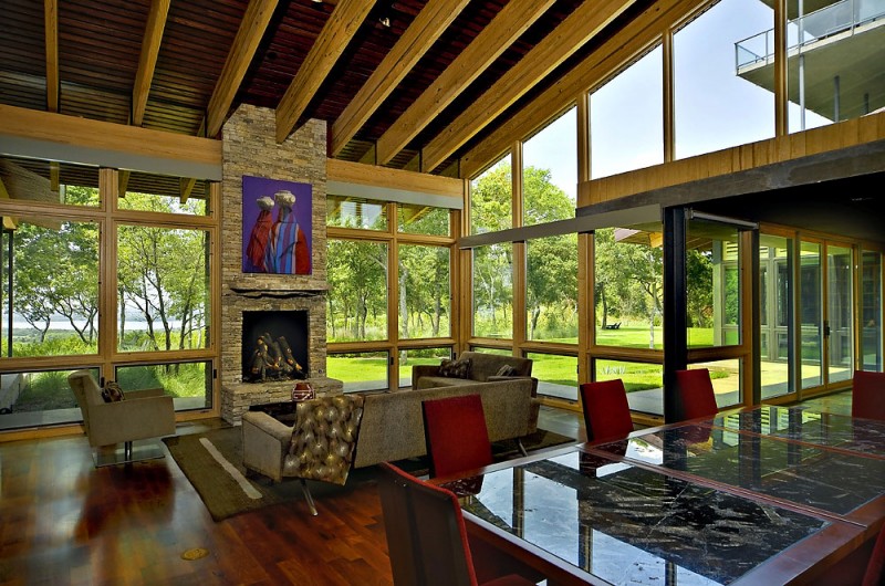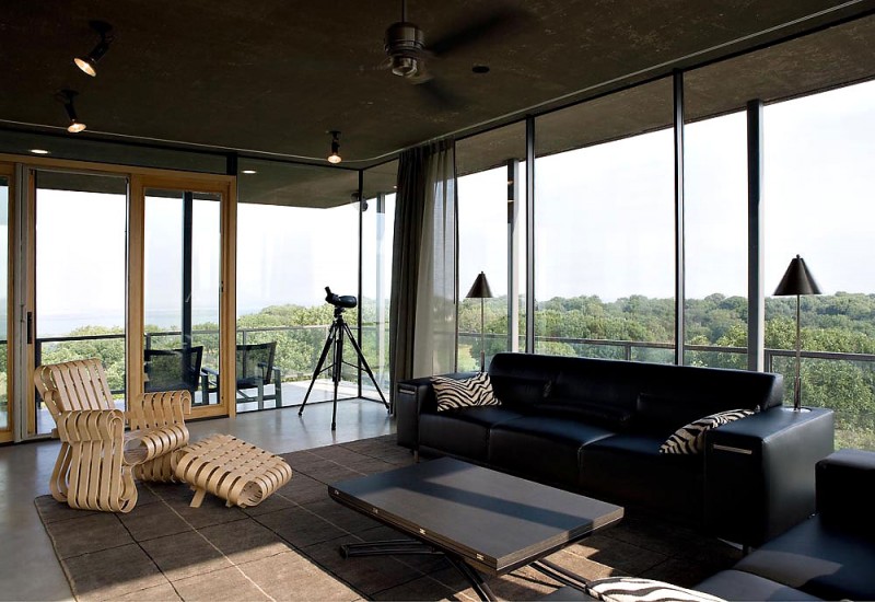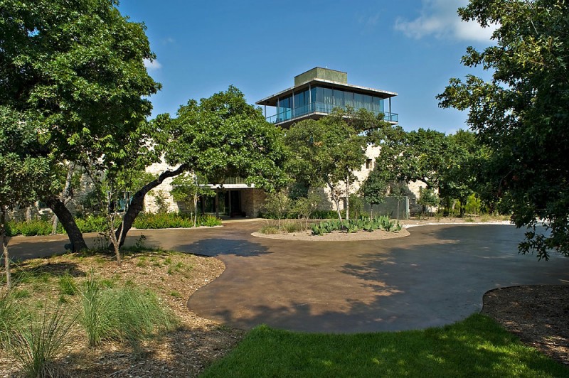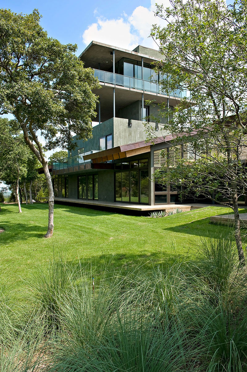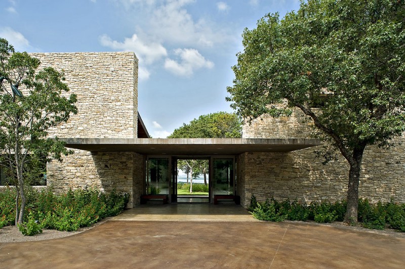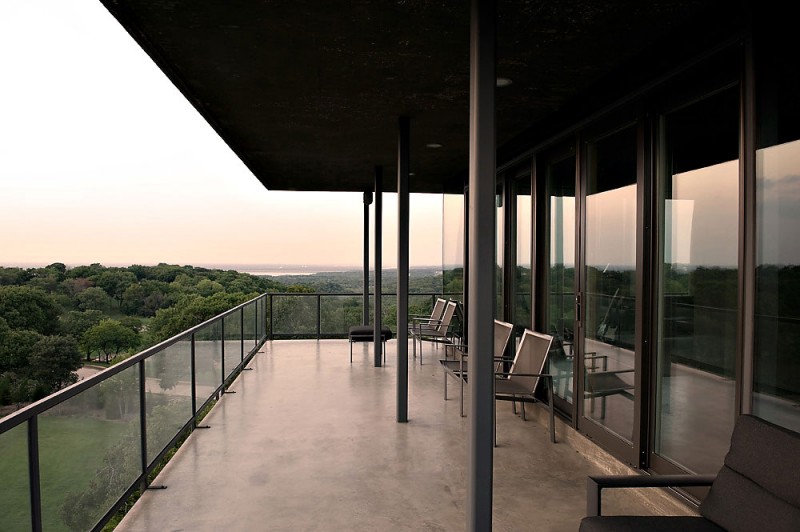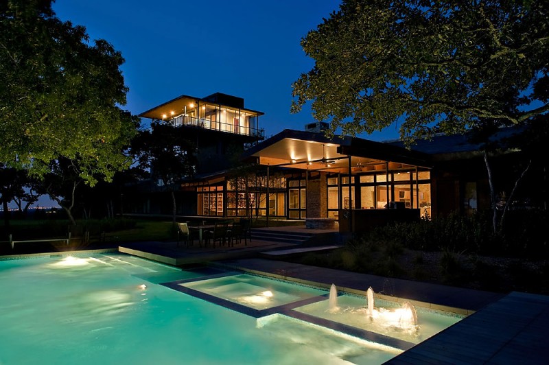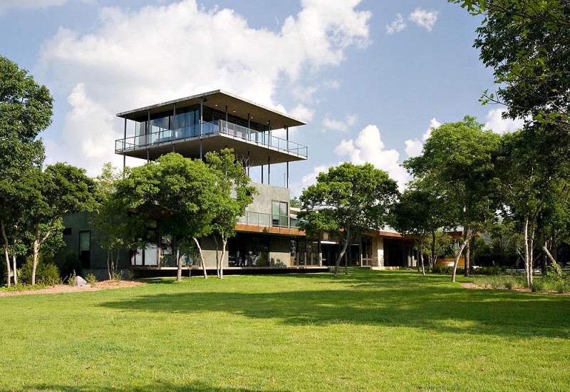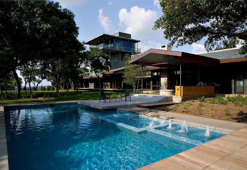 Ετούτο εδώ το σπίτι, το μεγάλο και απλωμένο, των 600 τετραγωνικών, ευρίσκεται στο Τέξας σε ένα κτήμα τεράστιο με θέα μια λίμνη μακριά. Κι επειδή ο κύριος ή η κυρία που το 'χει θέλει να έχει πολύ καλή θέα στη λίμνη, έφτιαξε μέρος του σπιτιού να μοιάζει με τετραόροφη πολυκατοικία, ώστε από τον τελευταίο όροφο να κοιτάει το νερό μακριά.