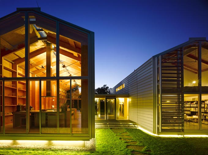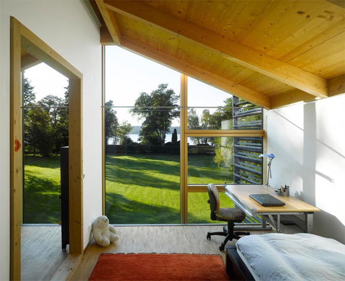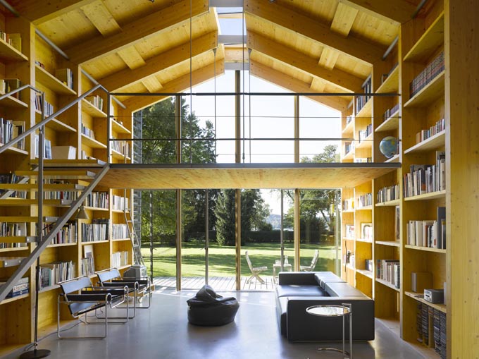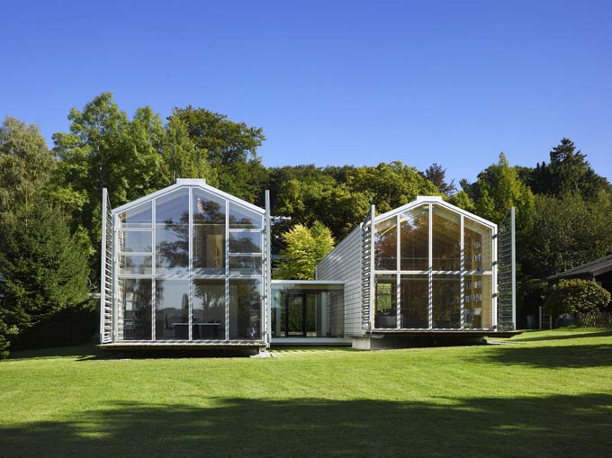 Ετούτο εδώ το ενδιαφέρον πράγμα μοιάζει σα δυο μακρόστενες αποθήκες που επικοινωνούν αναμεταξύ τους και έχουν ανασχεδιαστεί εντελώς για να είναι σπίτι και βρίσκονται δίπλα στις όχθες μιας Γερμανικής λίμνης κοντά στο Μόναχο και στέκονται σε πασαλάκια γιατί ενίοτε "το νερό ανεβαίνει" κι αυτό το σπιτόσκυλο δεν ξέρει πώς να το αξιολογήσει.