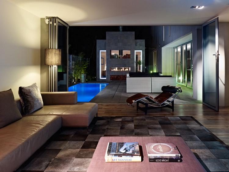 Α ναι, εδώ είσαι, κάτσε αναπαυτικά και δες εικόνες από μια μίνιμαλ μονοκατοικία στο Μελβούρνη της Αυστραλίας, μια γεμάτη με επιφάνειες λείες και καθάριες, με χώρους μακρόστενους μα ανοιχτούς, όχι πολύ μεγάλους μα χλιδάτους. Δες τη μικρή αυλή με την πισίνα, την τεράστια κουζίνα, το διαφανές τζάκι στο παρασπιτάκι, το εφετζίδικο φωτιστικό στη σκάλα. Δες: