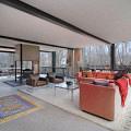 Και το υπόλοιπο σπίτι ωραίο είναι βεβαίως (το σχεδίασαν αυτοί), πολύ εντυπωσιακό και τεράστιο και εφετζίδικο -πρόσεξε τη μάζωξη Eames Lounge Chairs με τα υποπόδιά τους στη γυάλινη γωνίτσα-, αλλά όπως πια έχεις καταλάβει υπερβολικά γκράντε για τα γούστα του σπιτόσκυλου. Εκτός από τη βιβλιοθήκη. Να 'χε μια κολώνα στη γωνία, η ρημάδα, θα ήτο τέλεια.