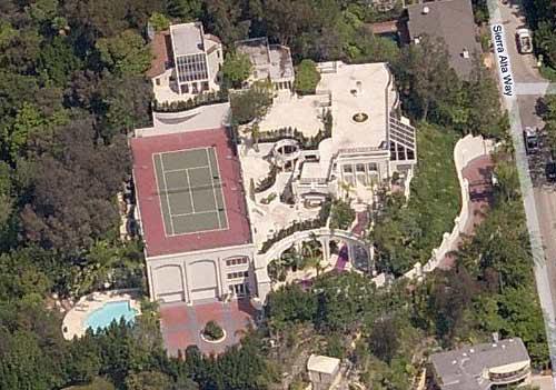Πρώτα απ' όλα: Αυτό το σπίτι δεν είναι στο Μπέβερλι Χιλς, είναι ακριβώς δίπλα, στο Δυτικό Χόλιγουντ, ίδιο μέρος πρακτικά, αλλά χωρίς τον ΤΚ 90210. Το σπιτόσκυλο δεν μπορούσε να σκεφτεί πιασάρικο τίτλο με το "Δυτικό Χόλιγουντ", όμως, οπότε ορίστε. Χάζευε που λες στο Live Maps ώσπου είδε αυτό το πράγμα. Δεν είναι μόνο ο μακρύς δρόμος που οδηγεί στο σπίτι, ούτε το ξέξασπρο χρώμα και το θηριώδες μέγεθος, όχι. Αυτό που εντυπωσίασε το σπιτόσκυλο περισσότερο απ' όλα, είναι το γήπεδο τένις στην ταράτσα.