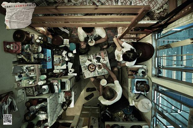 Εδώ, μερικές φωτογραφίες μικροσκοπικών διαμερισμάτων του Χονγκ Κονγκ τραβηγμένες από τα ταβάνια, για να γίνει απολύτως αντιληπτό το για πόσο μικροσκοπικά μιλάμε. Τις φωτογραφίες τράβηξε ένα πράμα που λέγεται Society for Community Organization, με σκοπό να δείξει τις συνθήκες ζωής των λιγότερο τυχερών της κοινωνίας. Σκοπός επετεύχθη.
