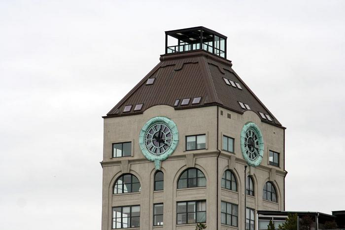 Το απίθανο αυτό κτίριο με το ρετιρέ με τα ρολόγια φαίνεται πεντακάθαρα, προφανώς, φόρα παρτίδα το βλέπεις, έτσι το σπιτόσκυλο σήκωσε τη Canon την SLR και -κλικ- στο τράβηξε δυο-τρεις λήψεις να το δεις κι απέξω. Θυμήσου το κι από μέσα.