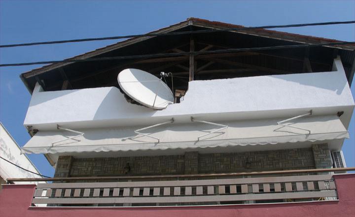 Ο μερακλής ιδιοκτήτης του παρόντος οικήματος στην Άνω Τούμπα της Θεσσαλονίκης είχε το προφανές δίλημμα, και επέλεξε Μακεδονίτικα, Γορδιοδεσμίτικα, δορυφορικά. Τί;