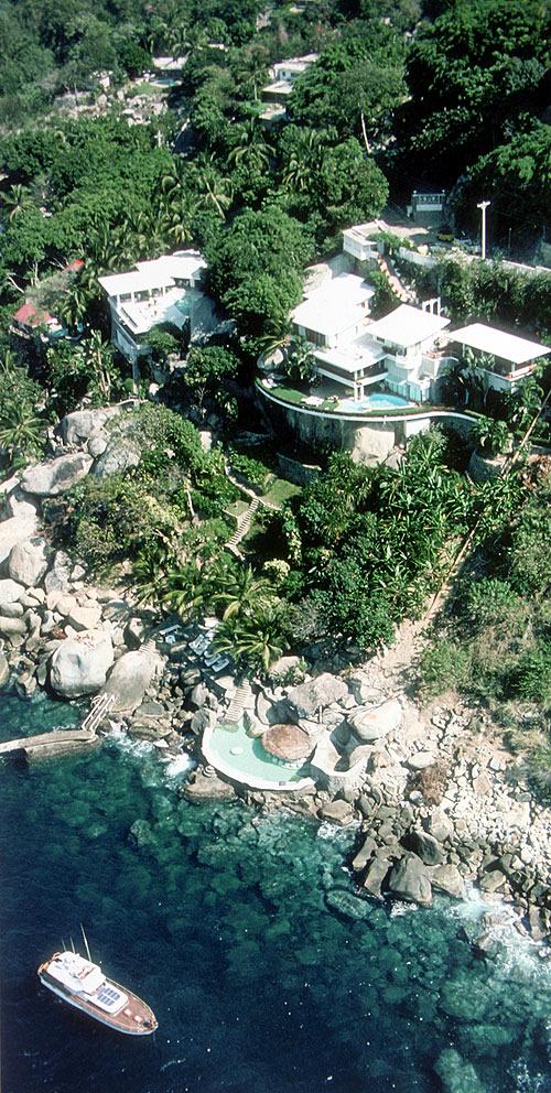 Αυτή η απίθανη σπιταρόνα λέγεται La Barranca, ανήκει (ανήκε;) στον Γουόρεν Άβις (αυτουνού με τις ενοικιάσεις αυτοκινήτων) και βρίσκεται στην Λας Μπρίσας, μια περιοχή πολύ χλιδάτη στο Ακαπούλκο του Μεξικού. Η φωτογραφία τραβήχτηκε το 1978 και το σπιτόσκυλο τη βρήκε σε ένα καταπληκτικό βιβλίο, το Poolside with Slim Aarons, το οποίο είναι γεμάτο φωτογραφίες κοσμικών τύπων από τα 60s και τα 70s στα σπίτια τους, γύρω απ' τις πισίνες τους. Το σπιτόσκυλο έχει αλλεργία στους κοσμικούς τζιτζιφιόγκους που ζουν για να βγουν φωτογραφία και έχουν λεφτά για τα οποία δεν δούλεψαν και όλους αυτούς, αλλά αυτό το βιβλίο το απήλαυσε τα μάλλα, καθώς έχει φωτογραφίες θαυμάσιες από σπίτια εντυπωσιακά. Μόνη ελληνική: Από ένα διαμέρισμα κάποιου Κανελλόπουλου, πιθανότατα στο Κολωνάκι. Κάτι 60s κυριούλες κάθονται γύρω από μια μικρή πισίνα, με την Ακρόπολη στο φόντο. Δεν λέει πολλά πράγματα.