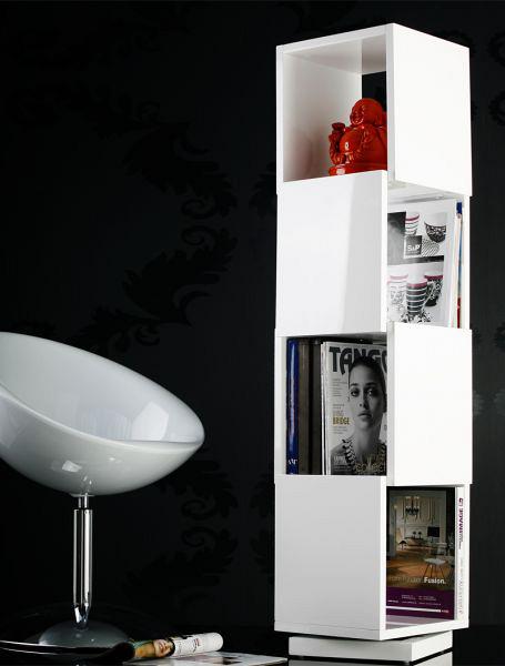 Να μια ερώτηση για σένα, αναγνώστη, που κόβει το μάτι σου κι η κρίση σου  ειν' ξουράφι: Οι πελάτες Ragio θα φέρουνε την αποπάνω βιβλιοθήκη εισαγωγή από  τις Ιταλίες. Είναι κομψότατη, όπως βλέπεις, και στριφογυρίζει κιόλας, ό,τι πρέπει για χρωματιστά πολυτελή περιοδικά και χρωματιστά και παχουλά (αλλά όχι πολύ μεγάλα) κόφη τέιμπλ μπουξ. Τα χαρακτηριστικά της: