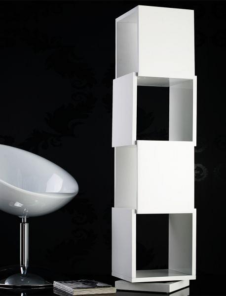 H βιβλιοθήκη είναι από λακαριστό λευκό ξύλο, έχει μεταλλική περιστρεφόμενη βάση, και διαστάσεις: