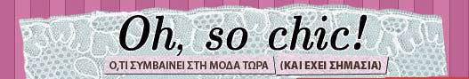 Λοιπόν η οικογένεια του σπιτόσκυλου ολοένα και μεγαλώνει, αυτό είναι ομολογουμένως θετικό, όσο περισσότεροι τόσο μεγαλύτερο το μπούγιο. Το νέο εκλεκτό αδερφάκι λέγεται ohsochic.gr και θα το εκτιμήσουνε οι πολλές φασιονίστας αναγνώστριες του σπιτόσκυλου, καθώς έχει να κάνει με τις μόδες και το στυλ και τα παπούτσια και τα ρούχα και όλα αυτά που λαχταρούνε οι γυναίκες, αντί να κοιτάνε τα αμάξια και τα XBox και τη μπάλα. Το Ohsochic το γράφουν δυο από τις γνωστότερες fashion editors στην πιάτσα, η Ελένη Στασινοπούλου και η Μαρία Παπαγρηγορίου, που ίσως να τις έχει πιάσει το μάτι σου στο InStyle, ίσως να τις έχεις διαβάσει στο yupi.gr, ίσως να έχεις πάρει και ένα από τα δύο βιβλία τους. Ή και τα δύο.