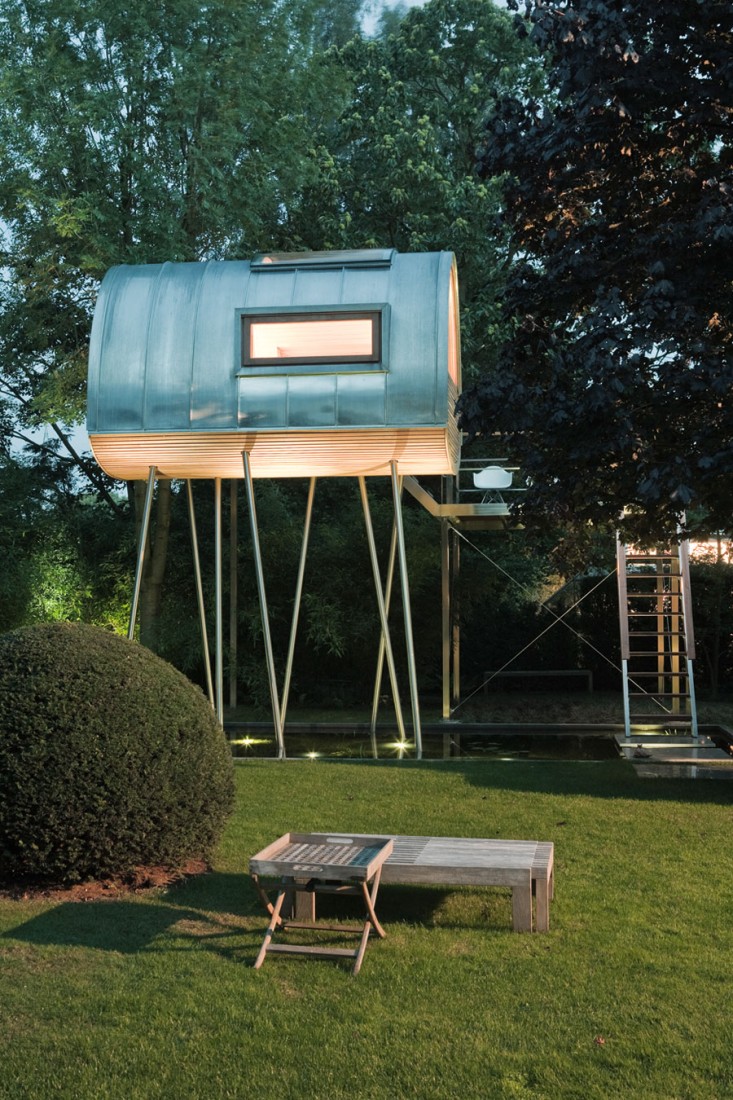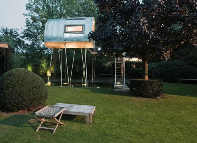 Ετούτο εδώ πάνε να το πουν δεντρόσπιτο, αλλά δεν είναι δεντρόσπιτο, γιατί δεν έχει καμία σχέση με δέντρα, εκτός από το ότι ένα μεγάλο μέρος από τα υλικά που το συνιστούν ήτανε κάποτε μέρος δέντρων. Αλλά είναι ένα παλαβό πραγματάκι (το έφτιαξαν αυτοί) που μπορείς να έχεις στο χτήμα σου αν δε φοβάσαι τα ύψη, αν το χτήμα σου δεν είναι σε σεισμογενή περιοχή, κι αν δε φοβάσαι ότι αυτό το πράγμα κάποτες θα αποκτήσει συνείδηση και ευφυία, και θα ξυπνήσει και θα αρχίσει να περπατά μοναχό του και να φεύγει, και τότε να εύχεσαι να μην είσαι μέσα.