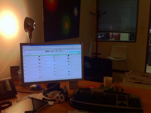 Το σπιτόσκυλο εχτές εζήτησε από τους τουήτερ φόλοουερζ του να ανεβάσουνε στα ίντερνετς μια φωτογραφία του χώρου εργασίας τους, βάζοντας το hashtag #whereiwork αποδίπλα, για να μπορεί να τους βρει. Έτσι, ρε παιδί μου, για να δει πού δουλεύουνε αυτοί οι άνθρωποι, πώς έχουν φτιάξει τα γραφεία τους, ή πώς είναι τα γραφεία της εταιρίας τους, τι διακόσμηση έχουν, τί τζιριτζάτζουλες έχουνε βάλει γύρω απ' το γκουμπιούτερ, τέτοια. Μια εικοσάδα από δαύτους κωλοβαρούσαν αρκετά για να κάνουν τον κόπο, και μπορείς να τους δεις ευθύς αμέσως αλφαβητικά: