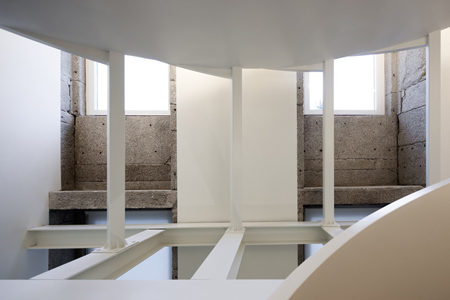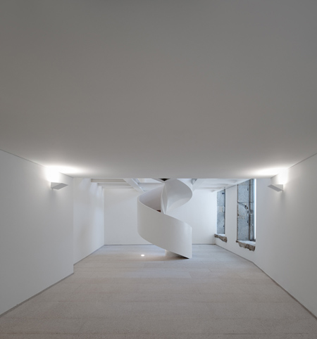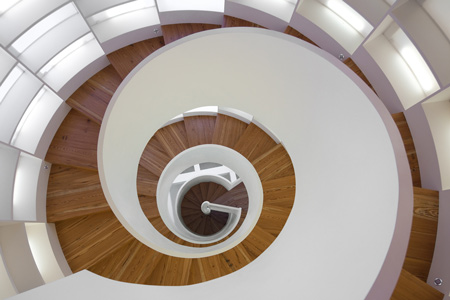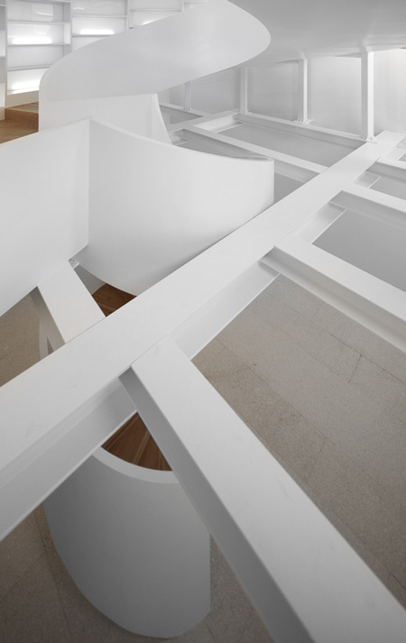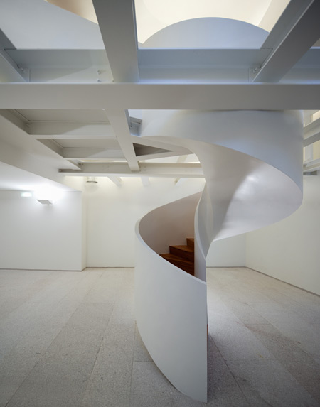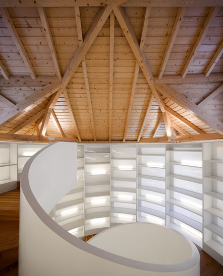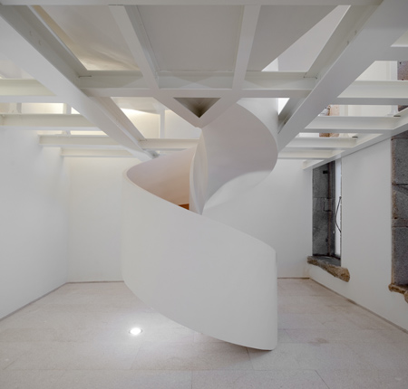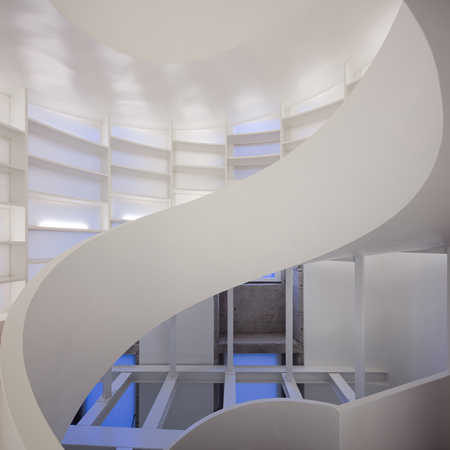 Το σπιτόσκυλο είδε αυτό το πρότζεκτ κι ένιωσε μια αντάρα και μιαν αναμπουμπούλα: Μια σκάλα στριφογυριστή που στα πλαϊνά έχει ράφια από πλεξιγκλάς που δημιουργούν μια βιβλιοθήκη σπιράλ και πεντάμορφη, που χωράει έξι (μέτρα τα) έξι χιλιάδες βιβλία. Βρίσκεται στην συν-υποφέρουσα αδερφή Πορτογαλία.